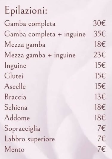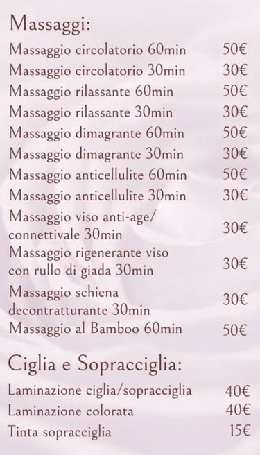 Per continuare a garantirti la qualità, la professionalità e i prodotti che avete sempre trovato nel mio centro, dal 02/02/2026 alcuni trattamenti subiranno un piccolo adeguamento di prezzo di 2/3€.